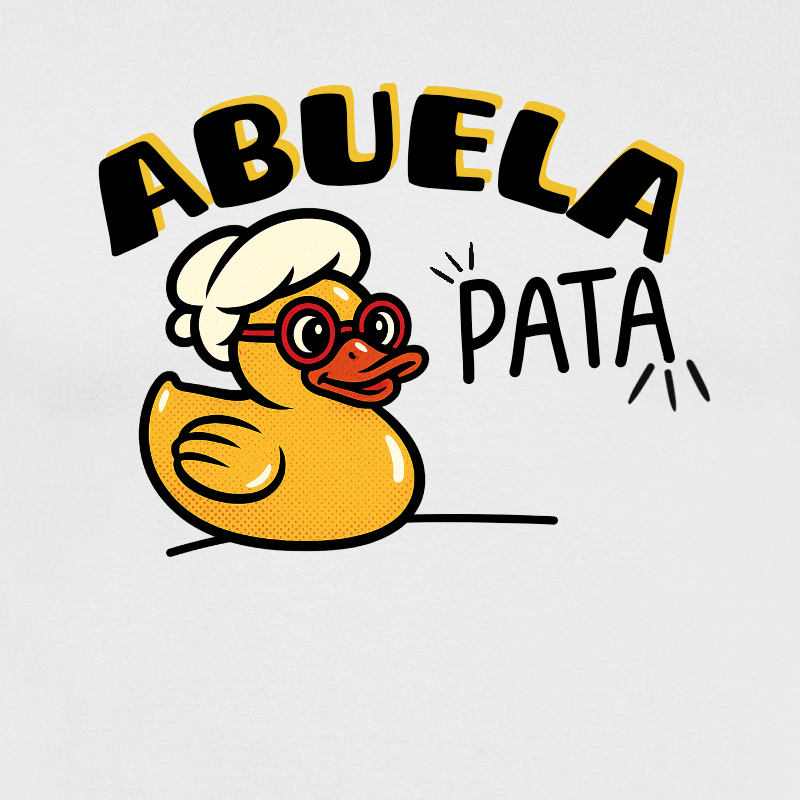Nuestra camiseta personalizada presenta un diseño divertido e ilustrado de un patito de goma caracterizado como una abuela, con el encantador juego de palabras «Abuela Pata». Perfecta para nietos y familiares que buscan un detalle especial y conmovedor.