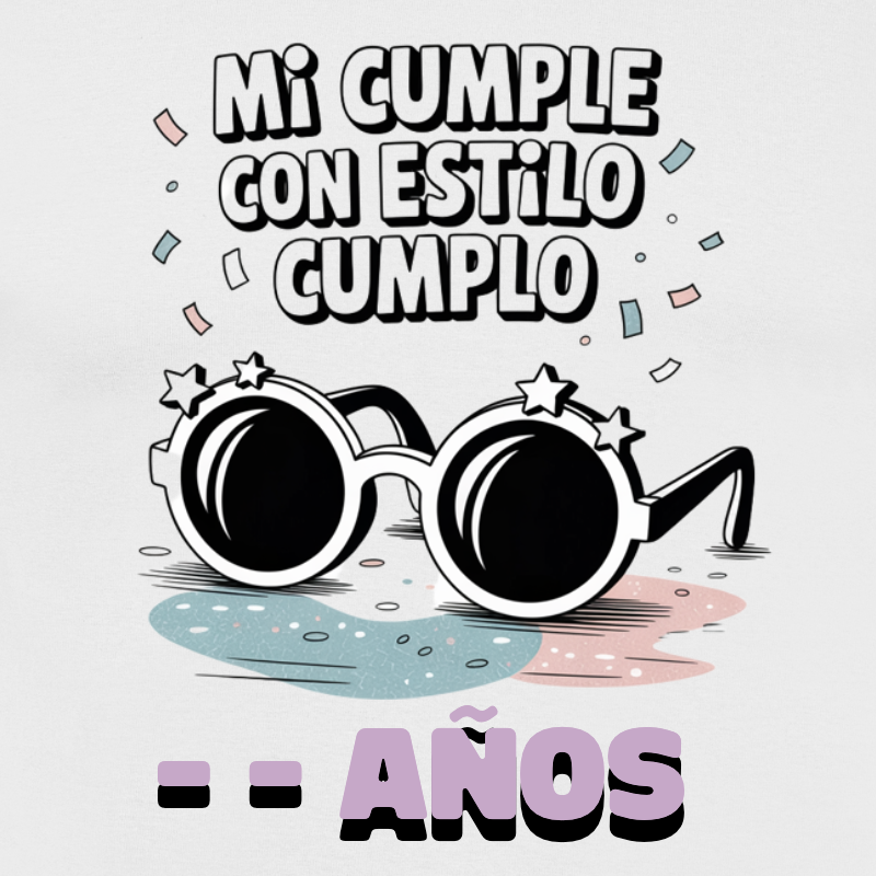 Esta camiseta personalizable es perfecta para niños, niñas, adolescentes y jóvenes que quieren destacar en su gran día. Con un vibrante diseño de gafas de sol con estrellas y confeti, ¡será la estrella de la fiesta!
