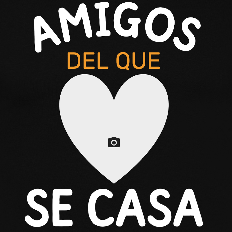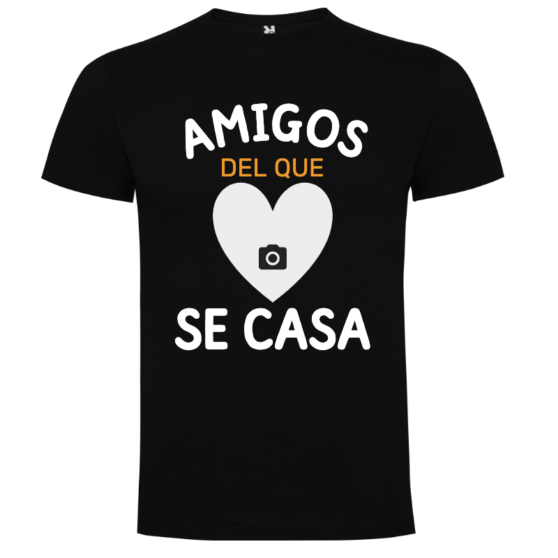 Diseñada especialmente para grupos de amigos, esta camiseta cuenta con el texto «Amigos del que se casa» y un corazón central donde podrás añadir una foto del novio, ¡ideal para inmortalizar esos momentos graciosos!