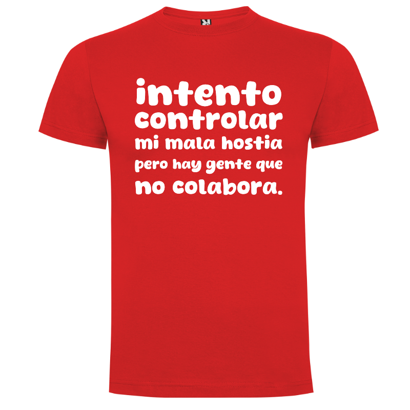 Presentamos nuestra camiseta personalizada con la frase «intento controlar mi mala hostia pero hay gente que no colabora». Perfecta para quienes tienen un carácter fuerte y un sentido del humor afilado. Ideal para llevar en ocasiones informales o como regalo original.