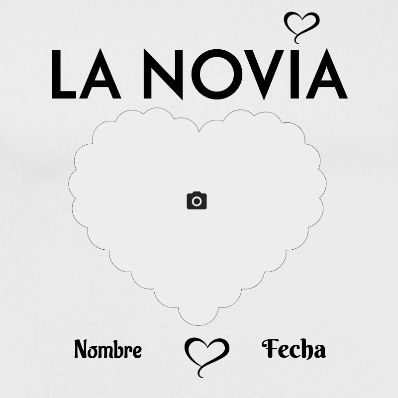 Presentamos la camiseta «LA NOVIA», ideal para novias, futuras esposas y amigas que buscan un regalo especial. Con un marco fotográfico en forma de corazón, podrás personalizarla con tu propia fotografía y datos significativos.