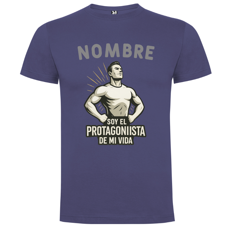 La camiseta presenta un diseño de estilo cómic vintage con la potente frase «Soy el protagonista de mi vida», y puede ser personalizada con tu nombre. Ideal para regalar en cumpleaños, logros personales o simplemente como un impulso motivacional para tus entrenamientos.