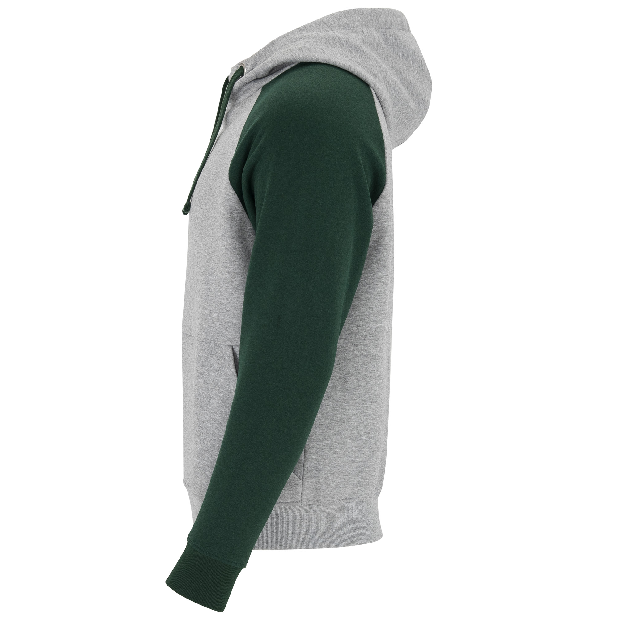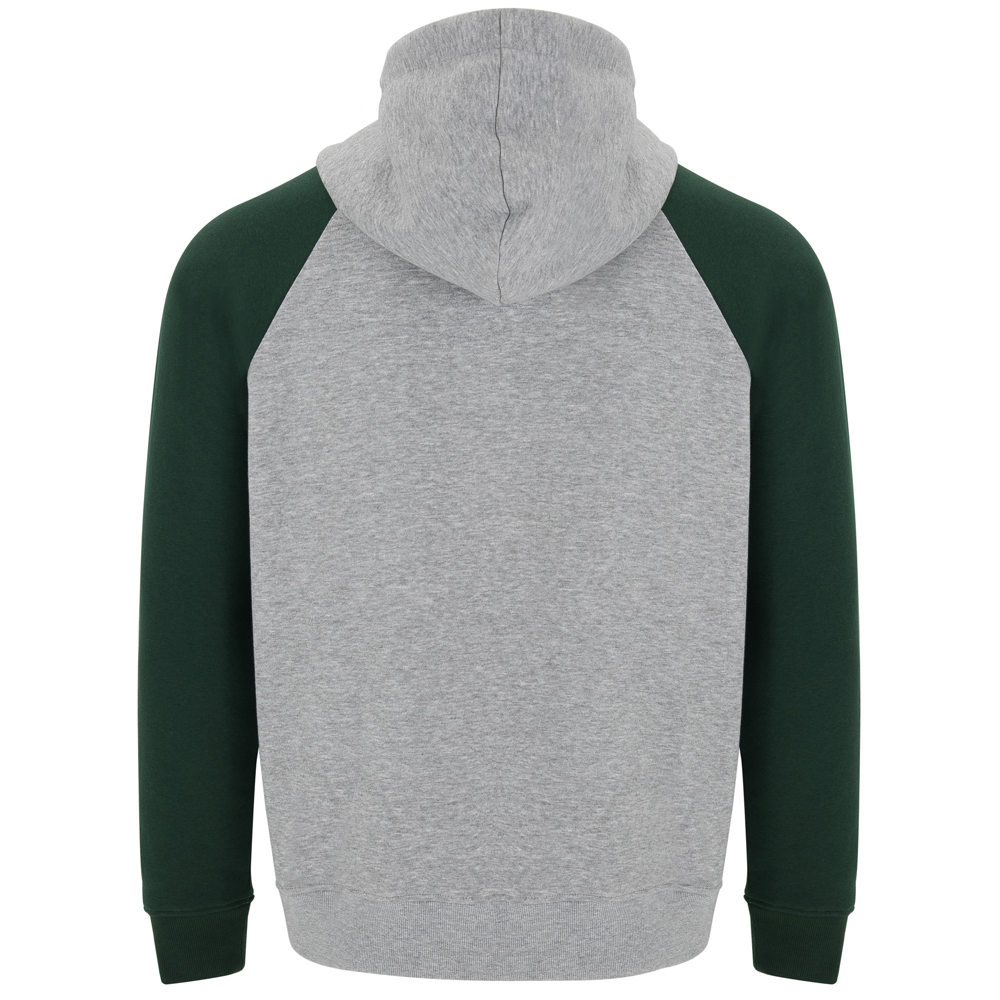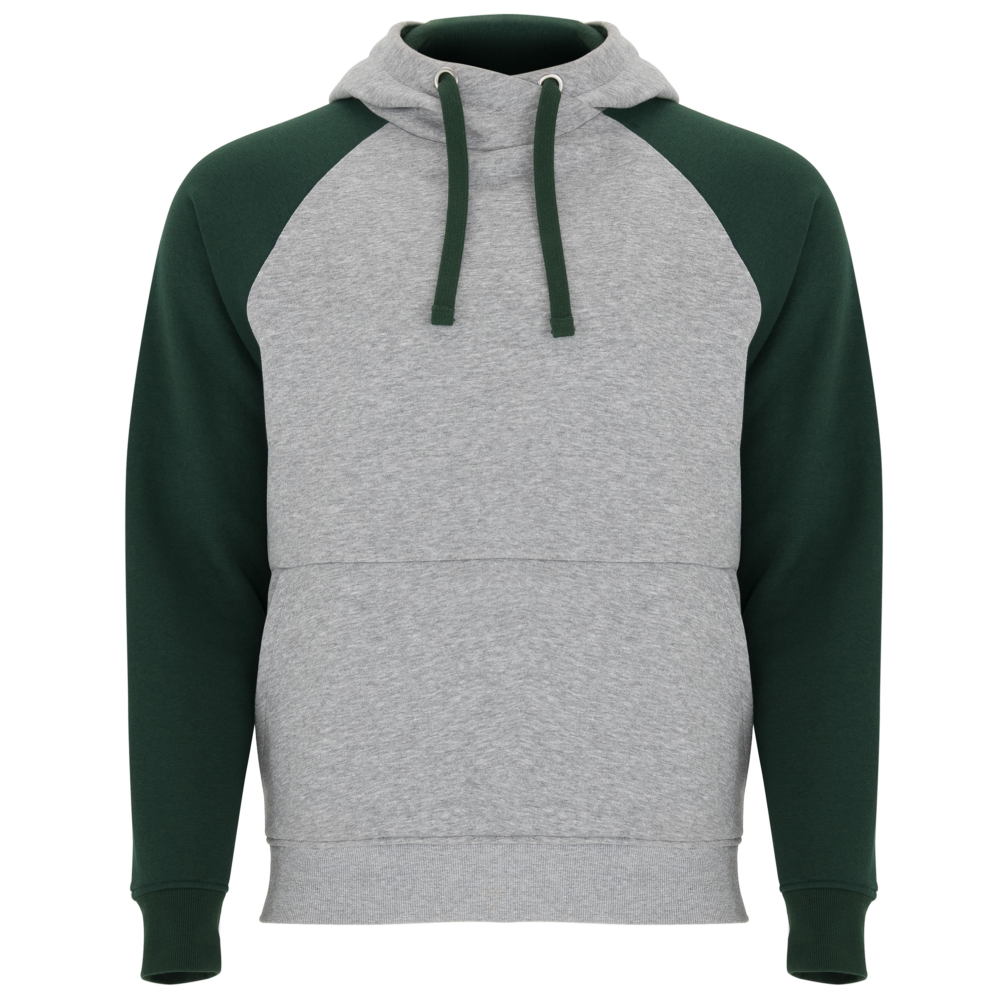 Sudadera bicolor unisex. Capucha con cuello cruzado y ojales metálicos, interior y cordones a contraste. Manga estilo ranglán a contraste. Bolsillo canguro. Puños y bajo con punto canalé con elastano 1×1.